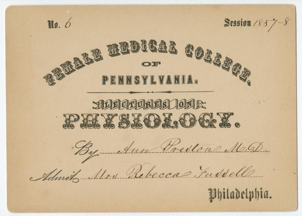 admission to lectures on anatomy by Joseph Leidy -- [d] admission to lectures on chemistry by R.E. Rogers -- [e] admission