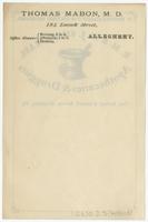 W.J. Snodgrass, apothecaries & druggists, Allegheny, Pa.; on verso: Thomas Mabon, M.D. 184 Lacock Street, Allegheny -- [6]