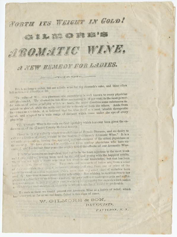 Worth its weight in gold! Gilmore's Aromatic Wine, a new remedy for ladies.
