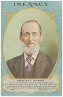 Complementary testimonial trade cards containing portraits of older consumers of Eskay's Food. One card shows "Ebenezer F.