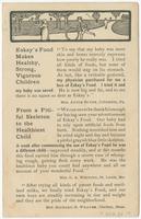 Printed on versos: vignettes showing children playing and individuals near a river, testimonials from parents of babies fed