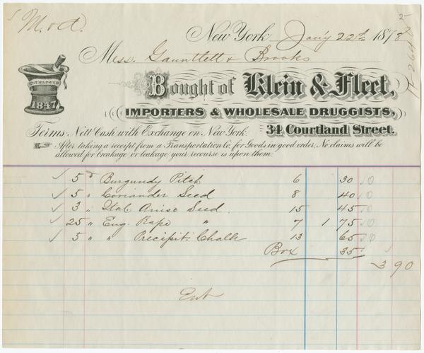 [Collection of billheads of pharmaceutical firms and related businesses, United States, 1852-1879] [graphic]. |
