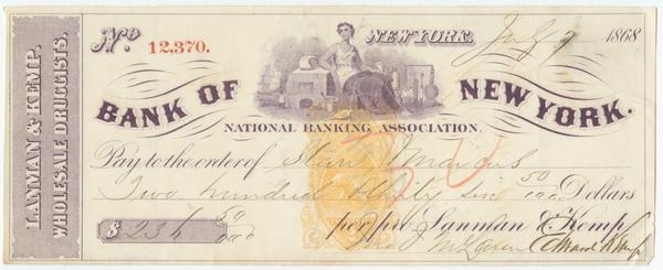 [Illustrated checks and lettersheet of Lanman & Kemp, wholesale druggists, 69, 71 and 73 Water St., New York] [graphic]. |