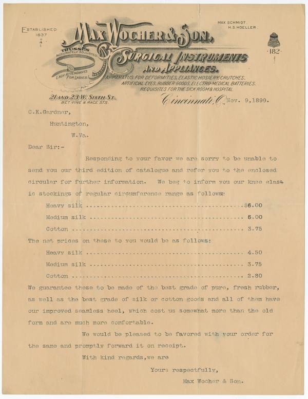 T.P. Bailey, M.D. (Georgetown, S.C.); Bellows Falls Drug Store (Bellows Falls, Vt.); Benton, Myers & Company (Cleveland);