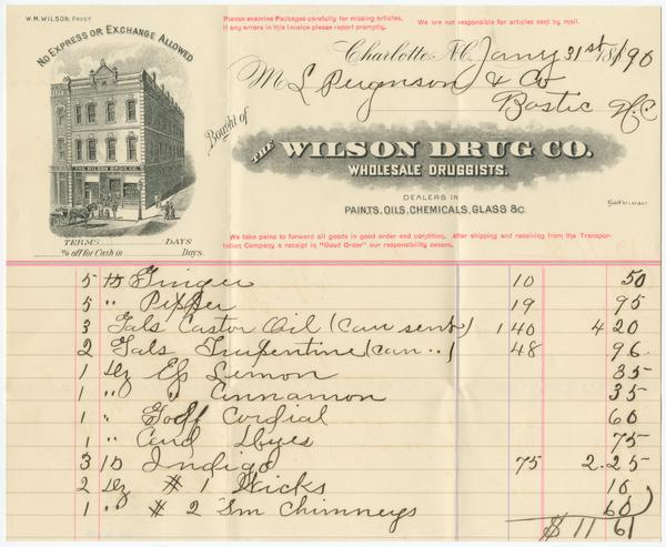 [Billhead and envelopes of Wilson Drug Co., wholesale druggists, Charlotte, N.C.] [graphic].
