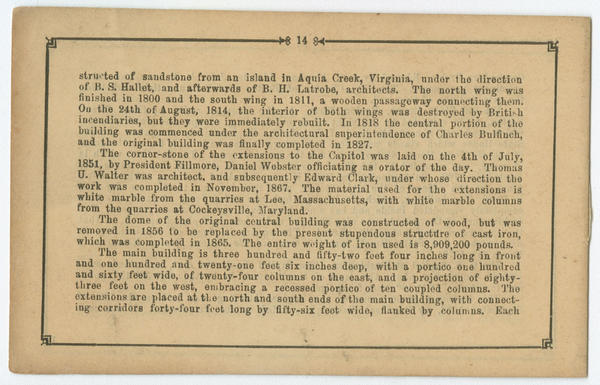 Includes 15-page "Description" of Philadelphia and major landmarks in Boston and Washington, D.C. Description missing pages. |