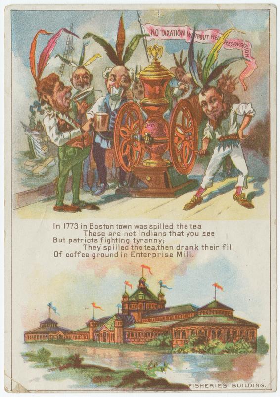 Trade card issued during the Columbian Exposition of 1893 advertising Enterprise Mf'g Co. of Pa. "Enterprise Coffee, Spice