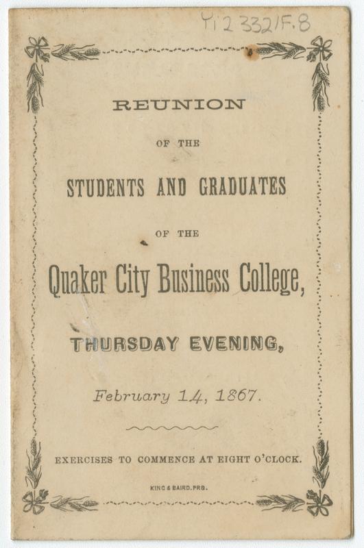 Reunion of the students and graduates of the Quaker City Business College, Thursday evening, February 14, 1867. : Exercises