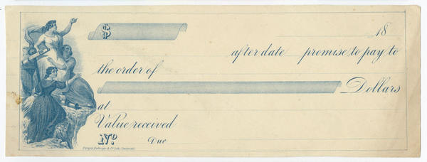 Series of checks, bank notes, billheads, and receipts, containing allegorical and patriotic vignettes and ornate pictorial
