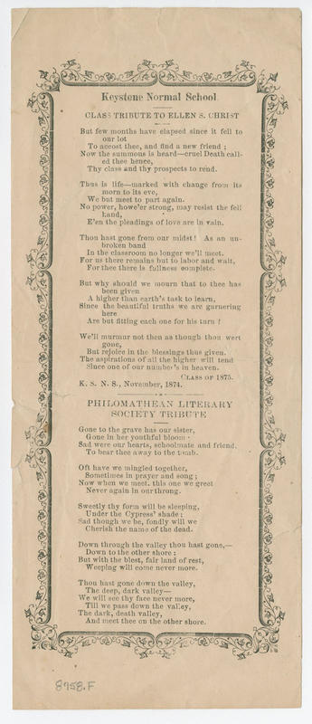 Keystone Normal School : Class tribute to Ellen S. Christ.