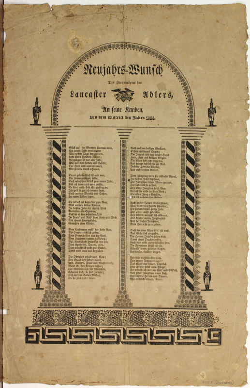 Neujahrs-Wunsch des Herumträgers des Lancaster Adlers, an seine Kunden, bey dem Eintritt des Jahrs 1829.