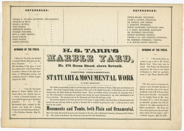 Insurance Agency, and United Sates Hotel) and H.S. Tarr’s Marble Yard, No. 274 Green Street, above Seventh, which comprises