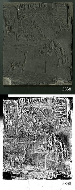 Block numbered in two places: 5838, also 45 in two places faintly, 34 in one place, 4 (defaced) before the number 5838 in