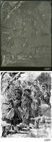 Woodblock for printing an image of many children in a room. |