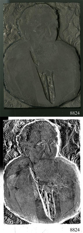 Woodblock for printing a portrait of Stephen Paxson. |