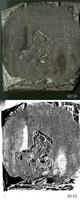 Image of a man seated on what appears to be a block of stone, possible in a stone cell or outside a stone wall; one arm and