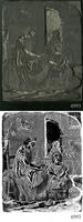 Woodblock for printing an illustration of a woman and a girl. |