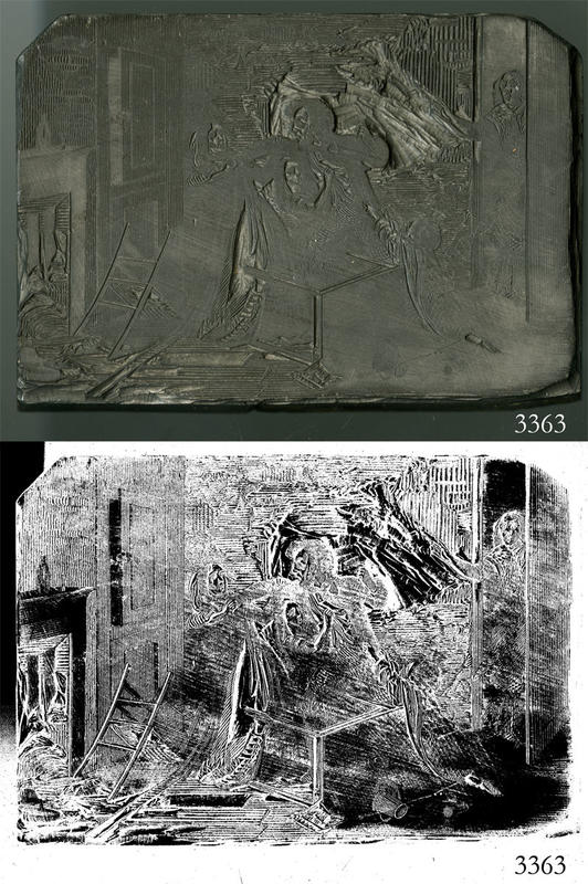 Block numbered in two places: 3363, also 717 on small adhesive label on back of block. |