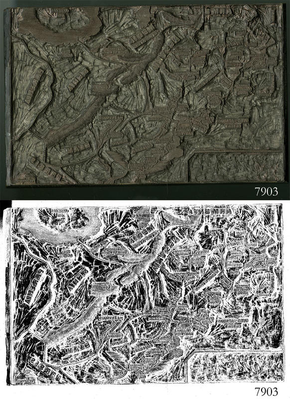 Woodblock for printing an illustration of a map of the Middle East. |