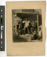 man reading the news of the progress to annex Texas. An African American man and child, attired in tattered clothing, listen