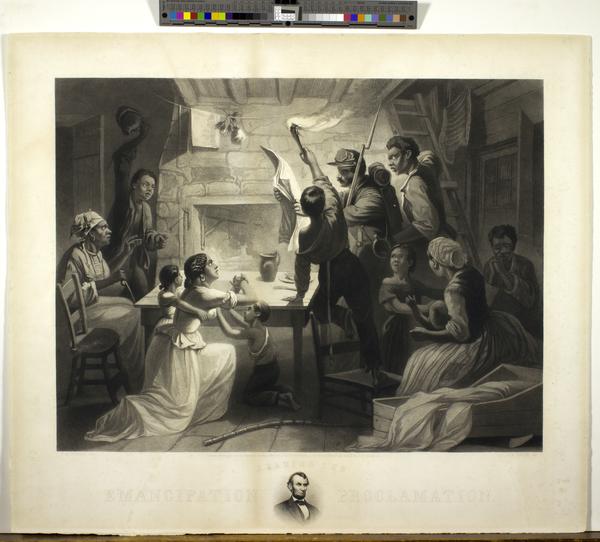 below the image. The Emancipation Proclamation, effective January 1, 1863, granted African Americans not only their right