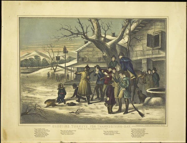 Shooting turkeys for Thanksgiving-Day [graphic] : Written by a New England patriot in 1765. |