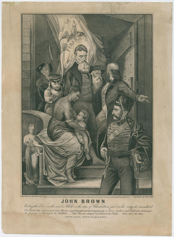 Print depicting the fictitious meeting between John Brown and an enslaved African American mother during the radical abolitionist's