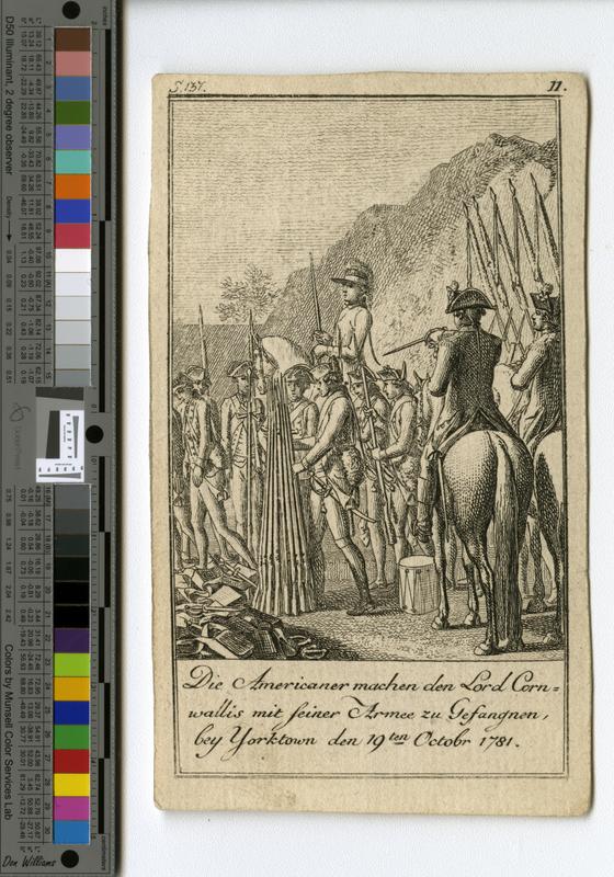 Die Americaner machen den Lord Cornwallis mit seiner Armee zu Gesangnen, bey Yorktown den 19ten Octobr 1781. [graphic].