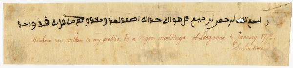 Date from manuscript note on recto: the above was written in my presence by a negro m[a]nding[o] at Leoganne in January 1773