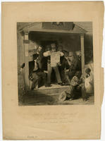man reading the news of the progress to annex Texas. An African American man and child, attired in tattered clothing, listen