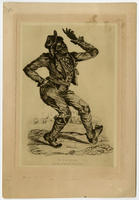 Full-length, caricatured portrait depicting T.D. Rice, known as the "father of American minstrelsy." Depicts Rice as his African
