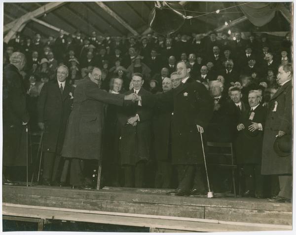 Mayor Moore of Philadelphia and Mayor Ellis of Camden at the Ceremony marking the beginning of physical construction of the Delaware River Bridge, January 6, 1922.