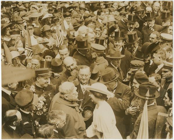 Miss Katherine Lee presenting sword given by the citizens of Philadelphia to Marshall Joffre
