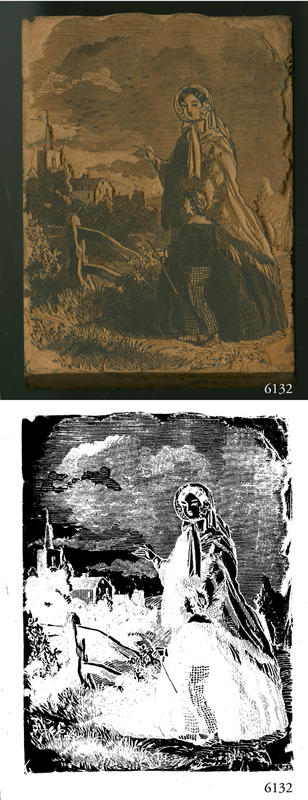 "The Dark Places Frontisp."—Inscribed on side of block. |
