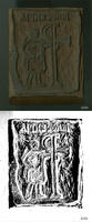 Woodblock for printing an illustration of man and staurogram. |