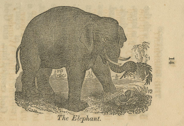 Illustration appears in The Show of animals (Philadelphia, between 1832 and 1860?), p. 14. The Show of animals was listed in American Sunday-School Union catalogues from May 1832 to July 1860.