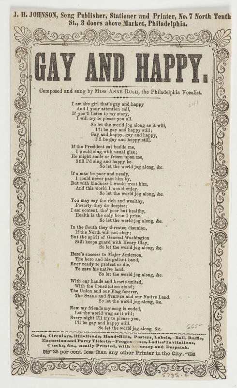 I am the girl that's gay and happy (8 vs. and chor.) Composed and sung by Miss Annie Rush, the Philadel- phia Vocalist. |