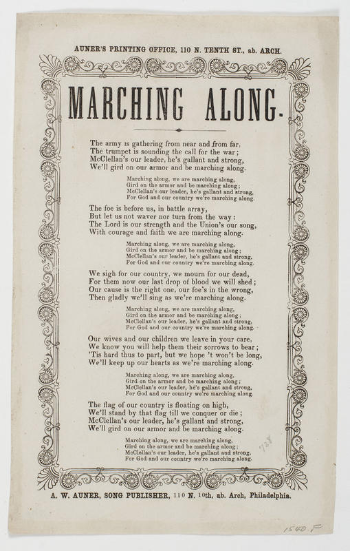 l. Title: "We're Marching Along"; as sung by the Canterbury Minstrels, at the Canterbury Hall, N.W. Cor. 5th and Chestnut