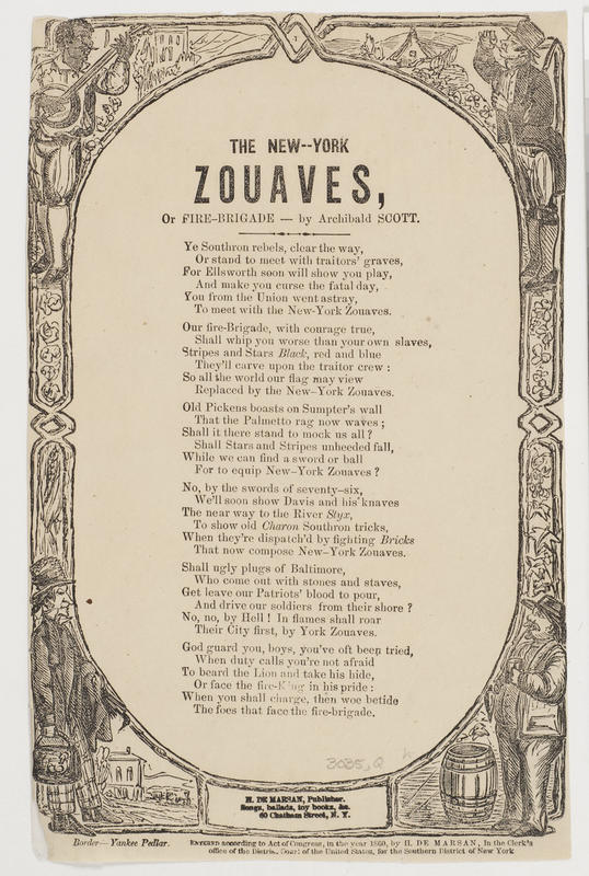 a. Title: "The New-York Zouaves, or Fire-Brigade"; by Archibald Scott; publ. De Marsan (4). De Marsan Yankee pedlar border;