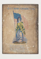 Flag of the Free! heart's only home (1 vs.) Drake's Address to the American Flag. Glazed card paper; blue ink; figure of Liberty with flag, col. 11.2 x 8 cm.