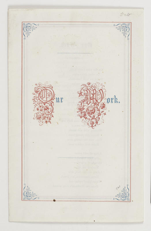 O« the wide battle-field (5 vs.) With two leaves, title on recto of first leaf; title re- peated and 3 vs. on verso; 2 vs. on recto of 2nd leaf; red and blue double-line border on recto of first leaf; red double-line border on verso and on recto of 2nd le