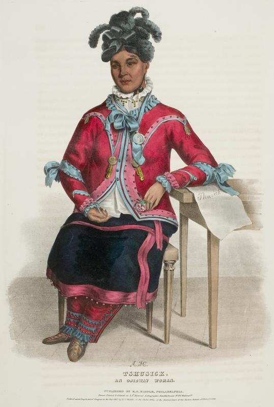Tshusick, an Ojibway woman. / A.H. ; drawn printed & coloured at I.T. Bowen's lithographic establishment no. 94 Walnut St.