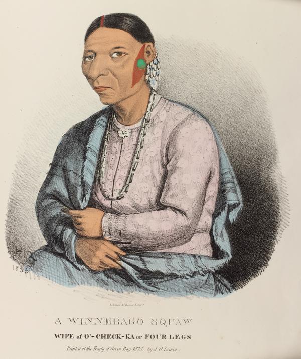 A Winnebago squaw : wife of O'-Check-ka or Four Legs / painted at the Treaty of Green Bay by J.O. Lewis ; J.B. [i.e., J. Barincou]