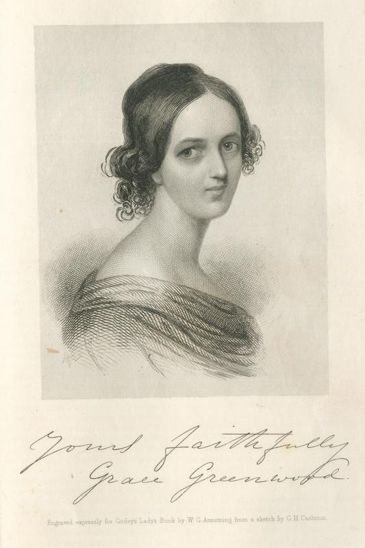 [Grace Greenwood] / engraved expressly for Godey's Lady's book by W.G.Armstrong from a sketch by G.H. Cushman.
