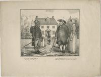 Racist caricature simultaneously mocking and condoning the pretentiousness and bigotry of early 19th century Philadelphia