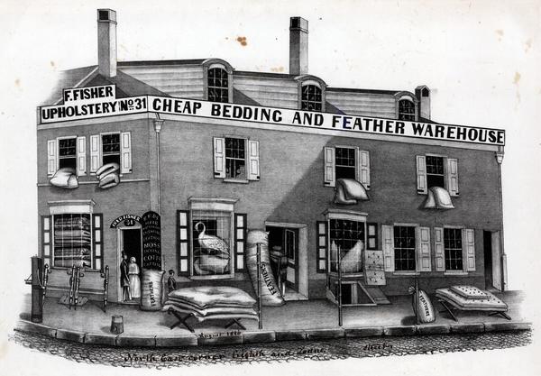[F. Fisher. Upholstery, No 31. Cheap bedding and feather warehouse.] [graphic].