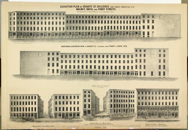 Elevation plan of Granite St. buildings and those connecting with Walnut, Dock and Front Streets. [graphic] / Drawn for J. Godley Esq. at A. Kollner's Lithy. N.E. cor. of 2d. & Dock St.