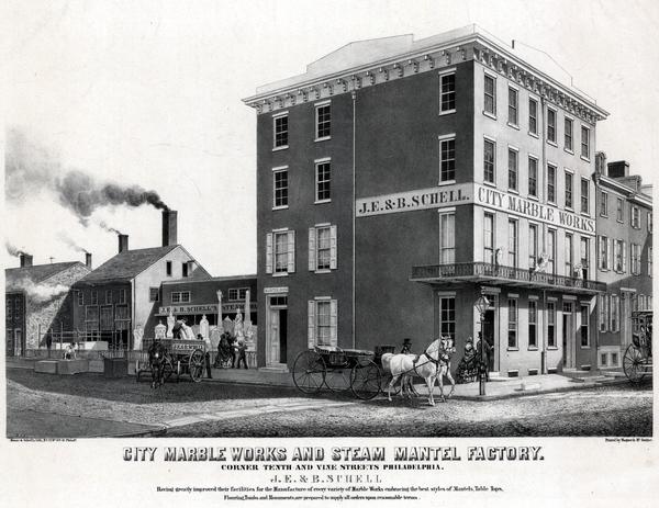 City Marble Works and Steam Mantel Factory. Corner Tenth and Vine Streets Philadelphia. J.E. & B. Schell. [graphic] / Rease & Schell's Lith., No. 17 So. 5th St., Philda.