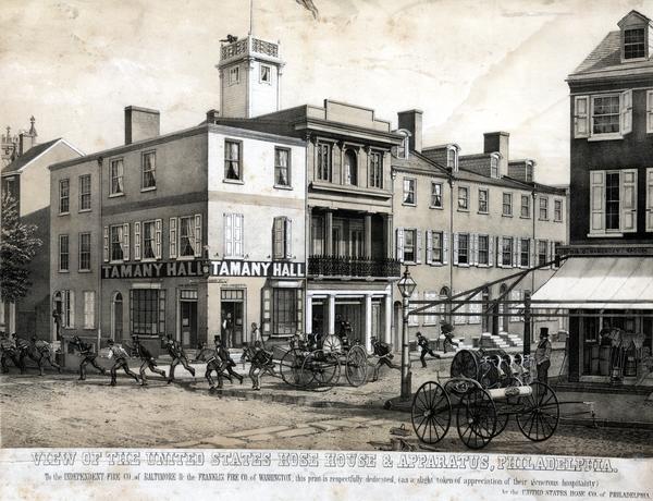 View of the United States Hose house & apparatus, Philadelphia. [graphic] : To the Independent Fire Co. of Baltimore & the Franklin Fire Co. of Washington, this print is respectfully dedicated, (as a slight token of appreciation of their generous hospitality) by the United States Hose Co. of Philadelphia.