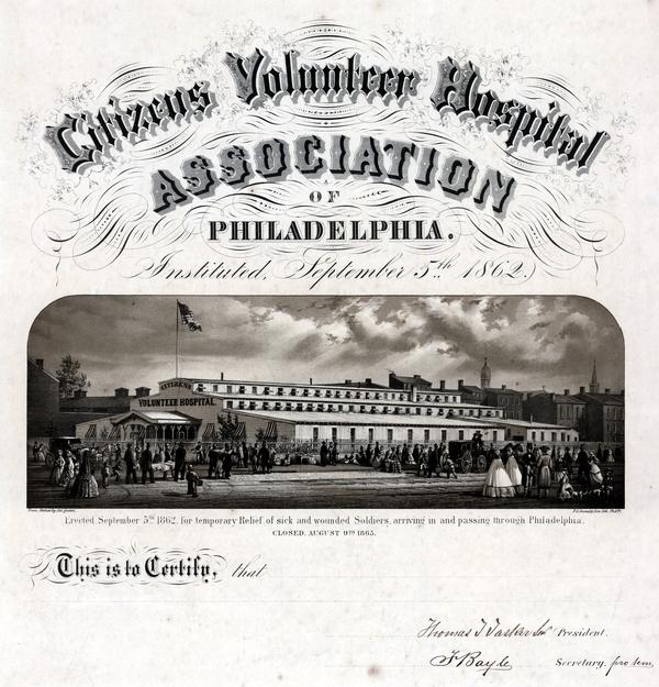Citizens Volunteer Hospital Association of Philadelphia. Instituted, September 5th 1862. [graphic] / From nature by Jas. Queen.